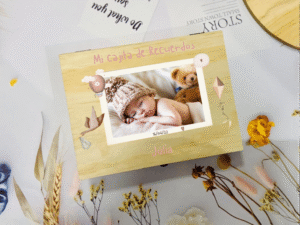 Caja de Madera Personalizada con Foto Natalicio Bebé