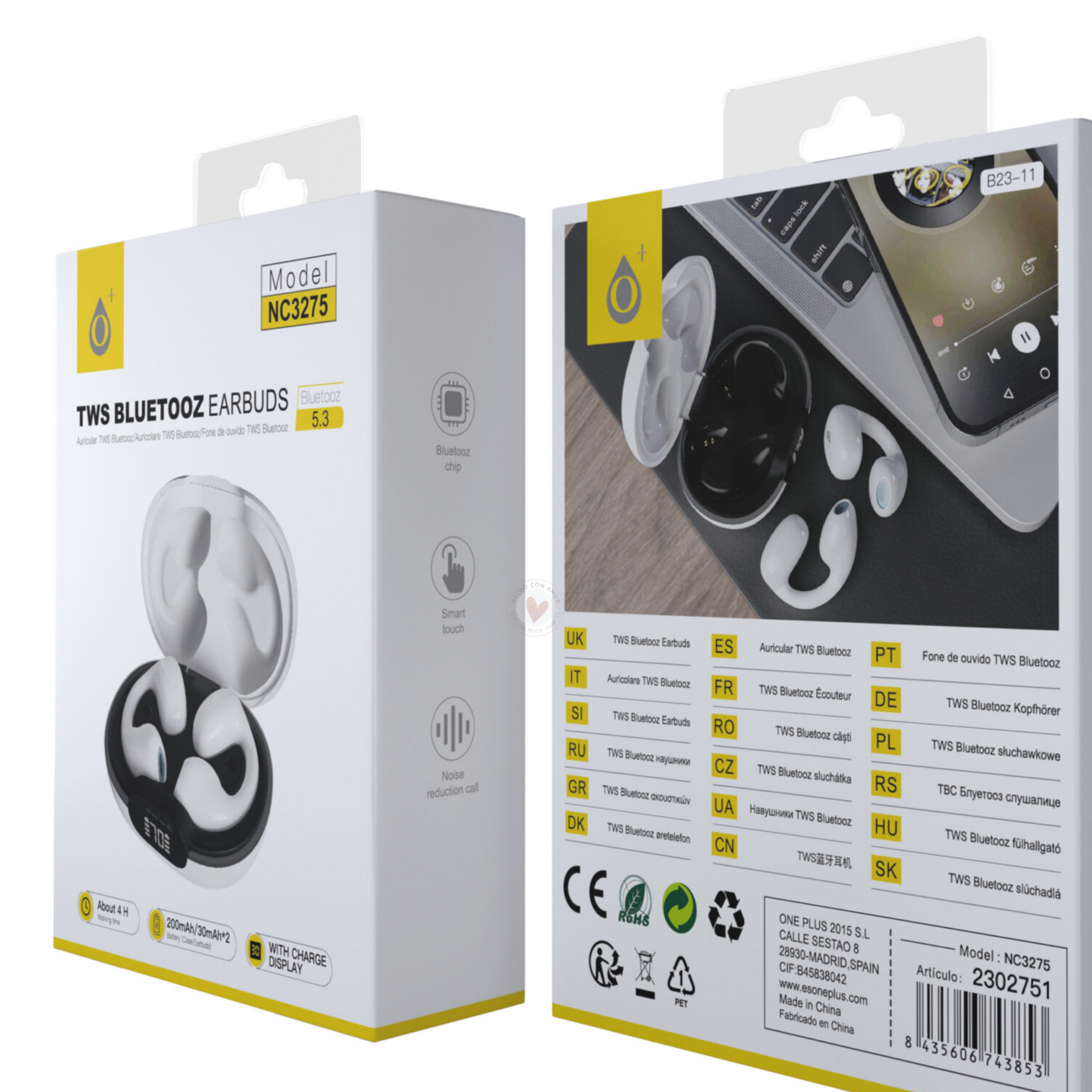 NC3275 BL Auriculares Cool TWS Bluetooth 5.3, Bateria Earbuds 30mAh*2 + Estuche 200mAh, con pantalla digital, 4h de uso, Blanco