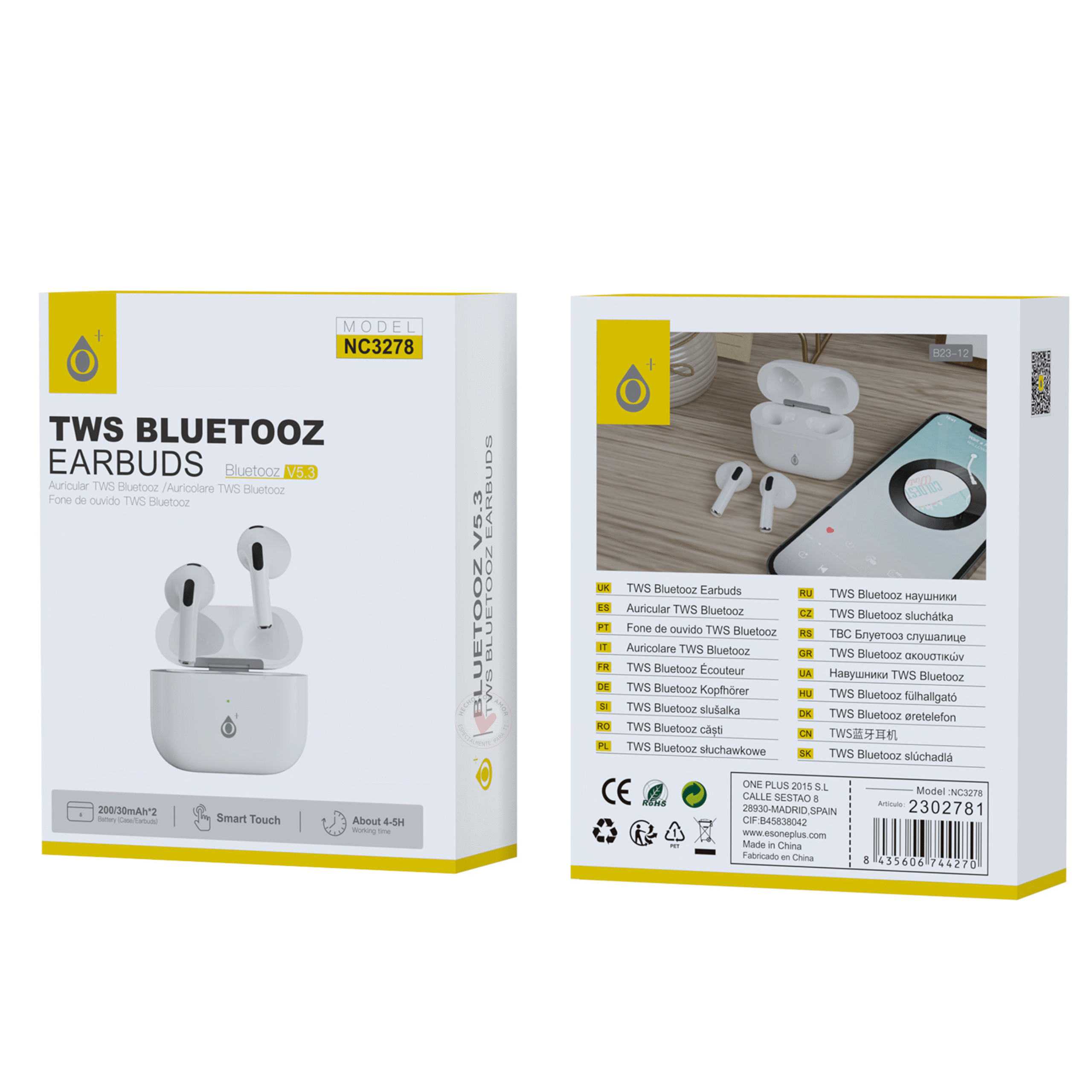 NC3278 BL Auriculares Bluetooth TWS (30mAh*2) con estuche cargable(200mAh), Blanco
