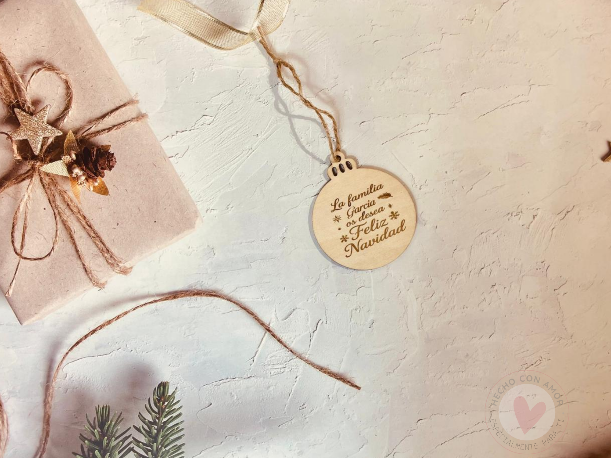 Cada bola personalizada es mucho más que un adorno. Es un recuerdo que permanecerá año tras año, recordando los momentos más bonitos junto a tus seres queridos. Su acabado en madera aporta un estilo natural y elegante, mientras que la opción con brillo ofrece un toque moderno y festivo.