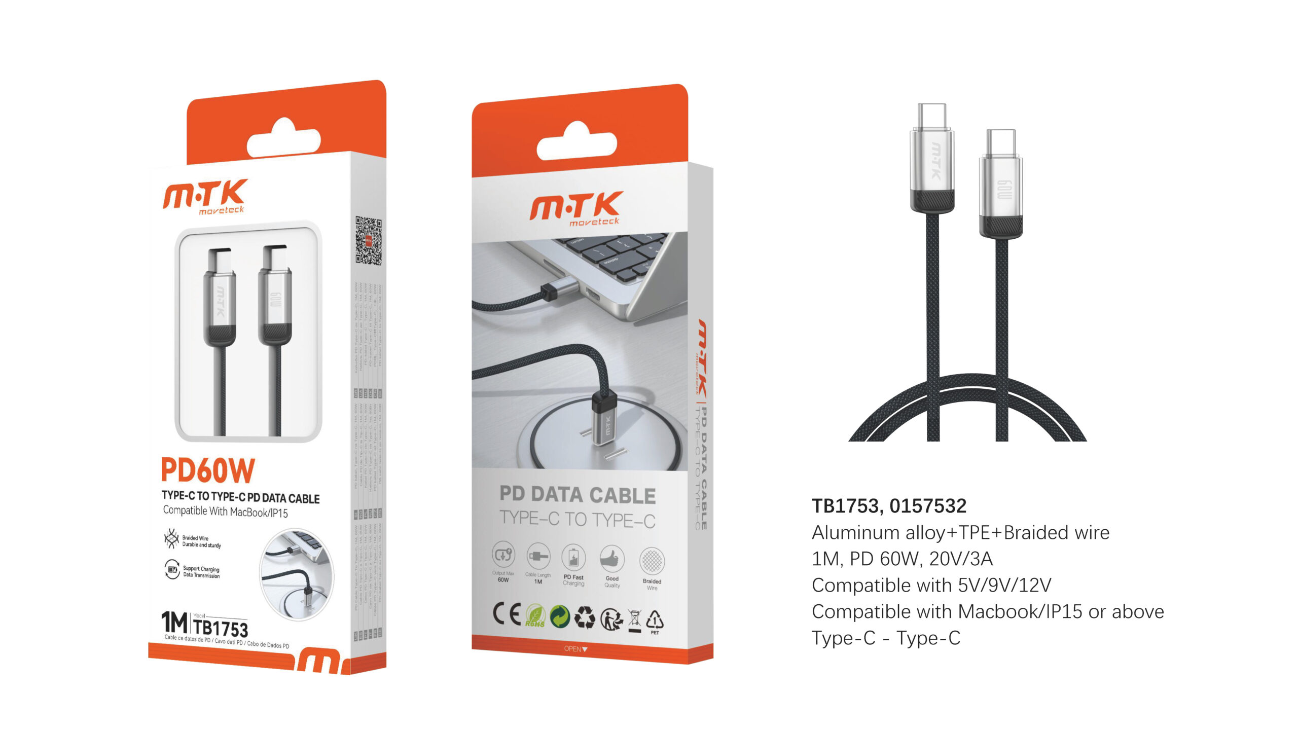 Cable Iphone Cable de Datos Tipe C a Type C TB1753 Luxury Cable de datos Dralvox trenzado para Type-C a Type-C , Compatible con Apple Type-C, 60W/20V/3A, 1M, Negro+Plata
