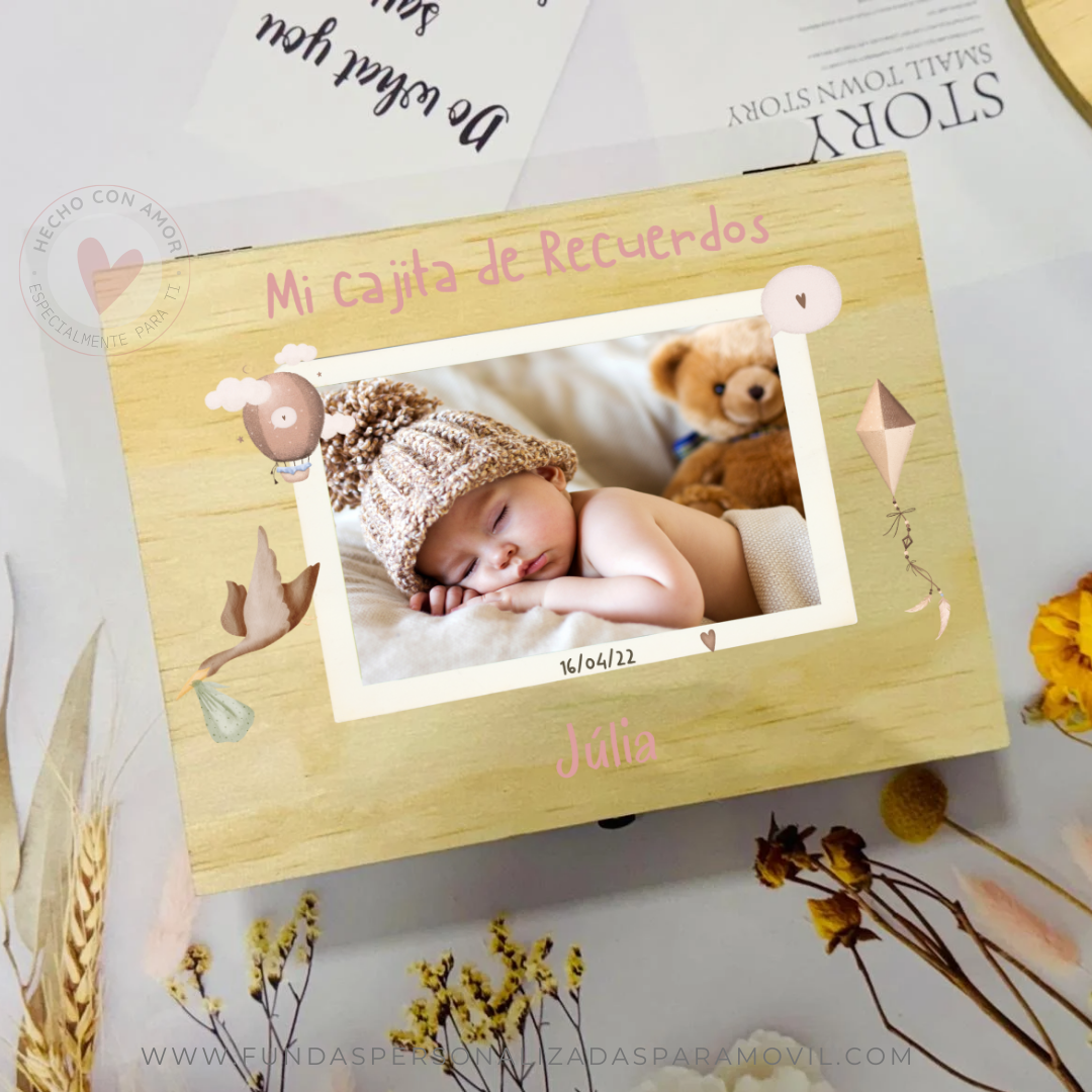 Caja de Madera Personalizada con Foto Natalicio Bebé