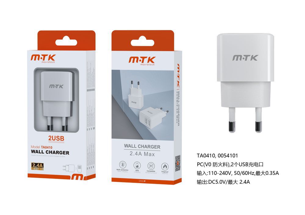 Cargador de Red TA0410 BL Luxury Cargador de Red Ayme, 2 puerto USB-A, Sin Cable, 2.4A(Max), Blanco