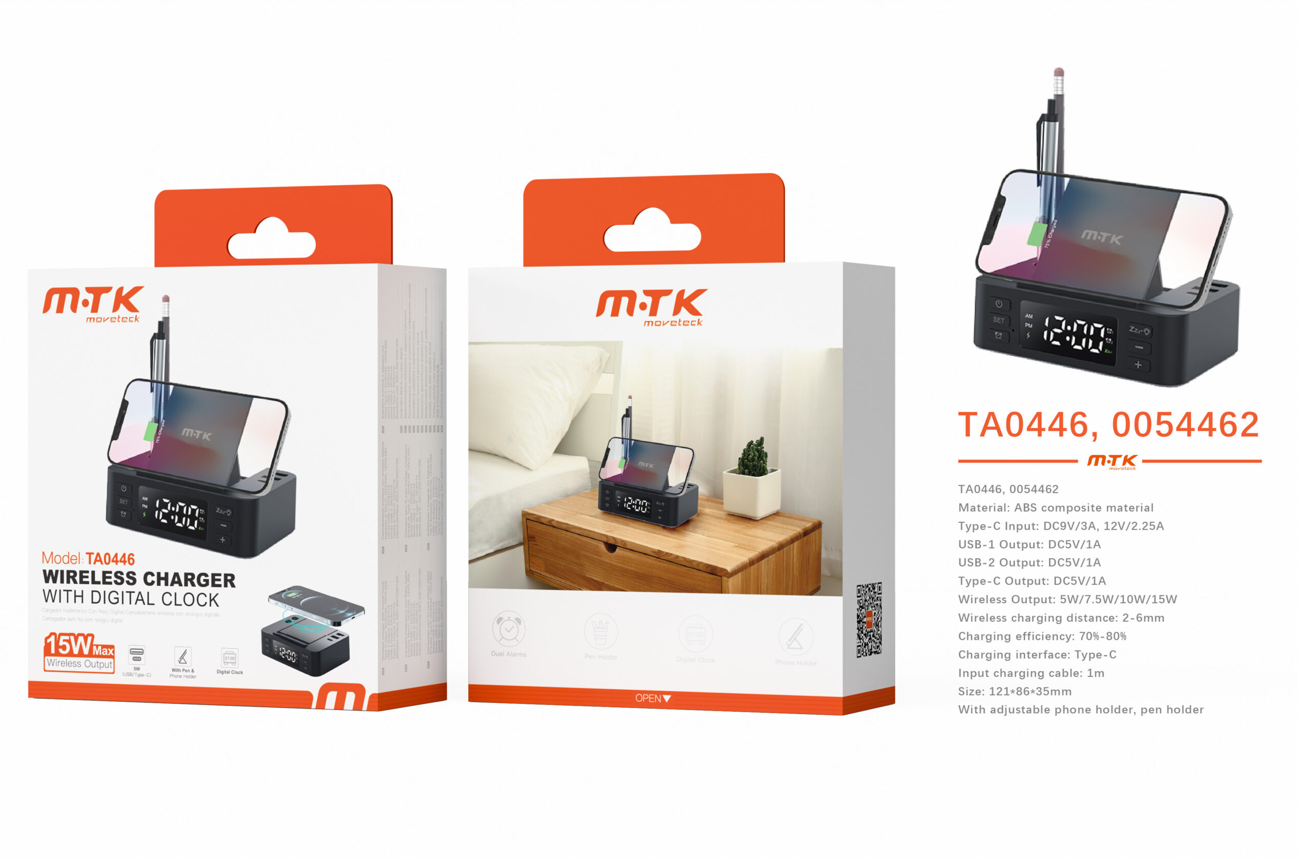 🖤 TA0446 NE Luxury – Cargador Inalámbrico 15W con Reloj Digital y Múltiples Funciones