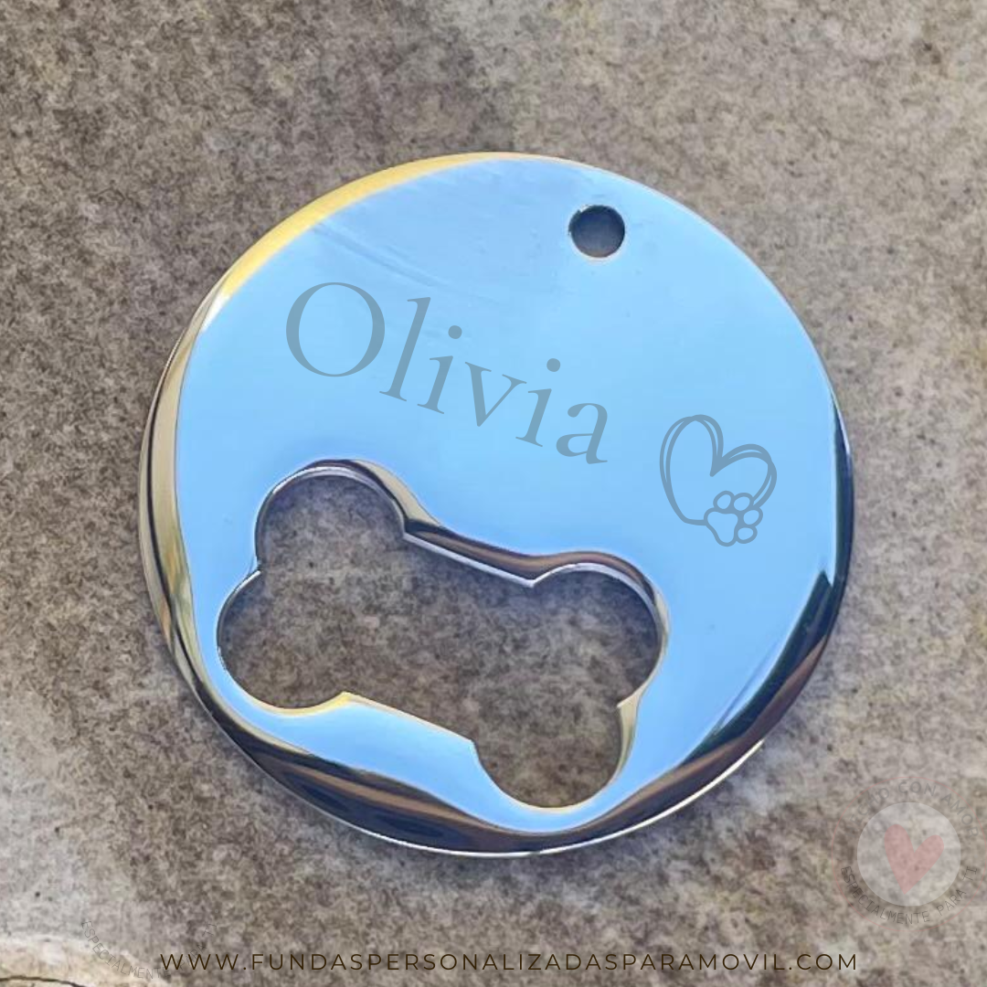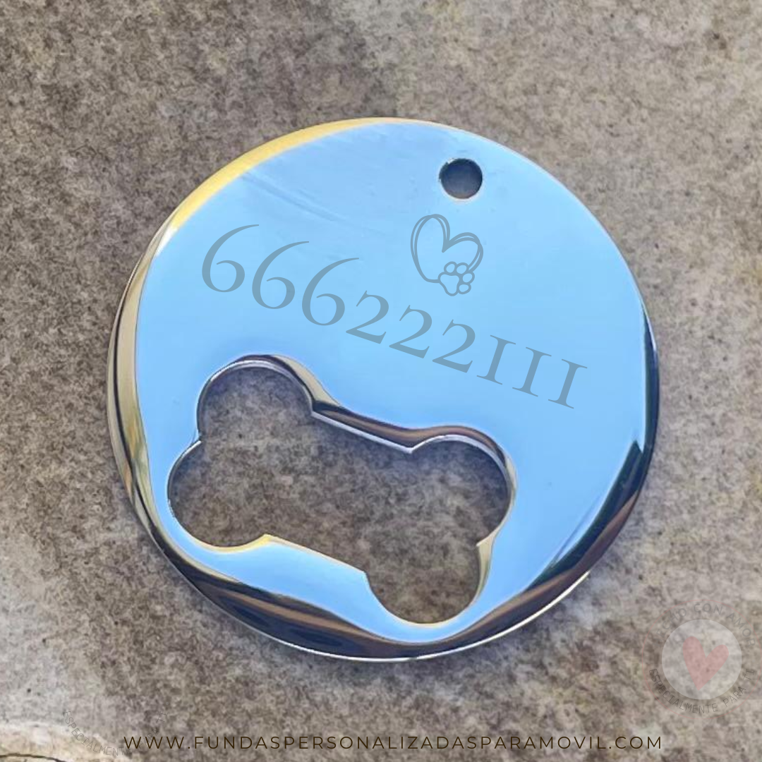 Colgante Acero Personalizado Chapa Personalizada para Collar de Perro Redondo Hueso