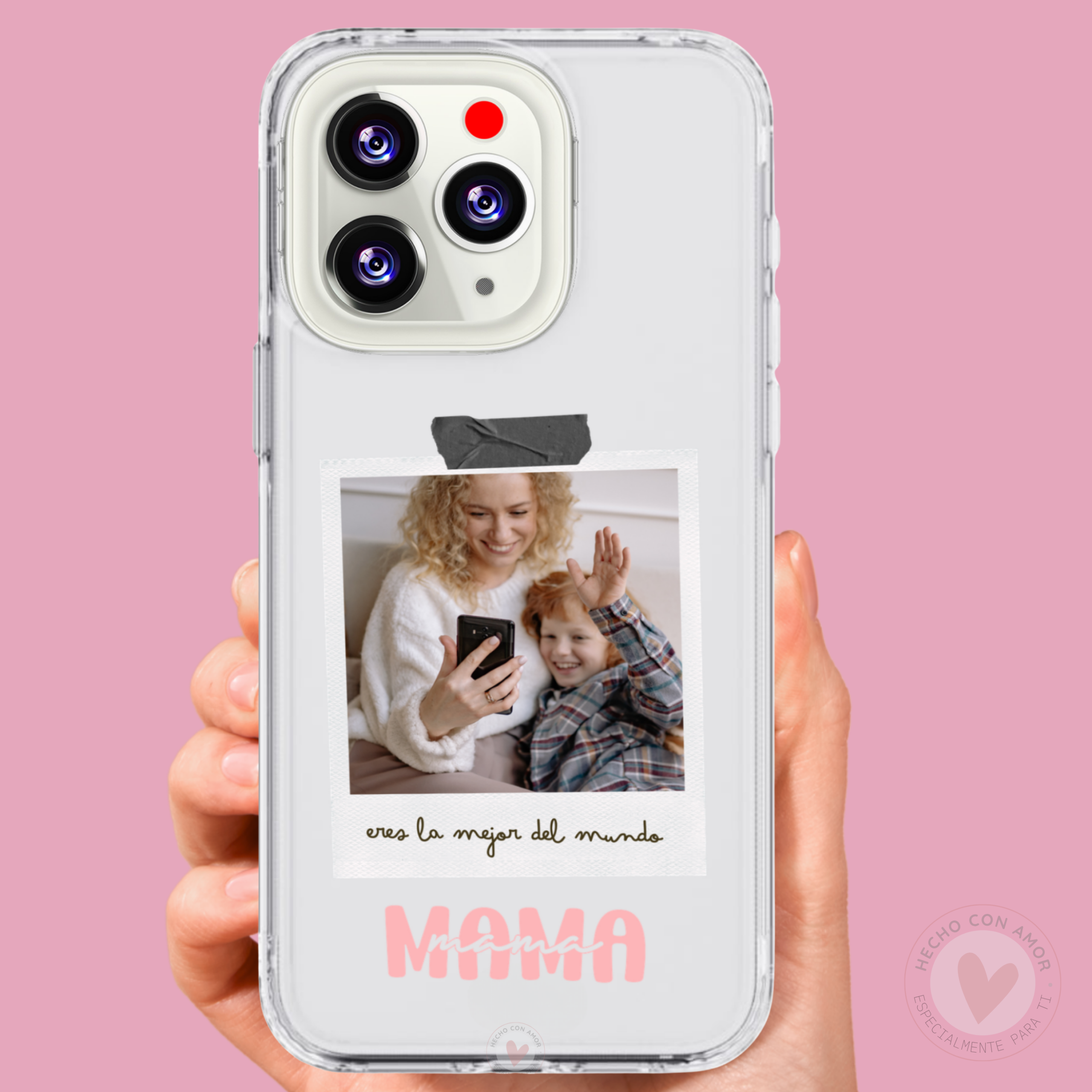 Sorprende a mamá en su día especial con una funda personalizada para móvil, diseñada con amor y pensada para emocionar. Convierte sus mejores recuerdos en un detalle único: añade fotos, nombres, fechas o mensajes especiales y crea un regalo que llevará siempre consigo.