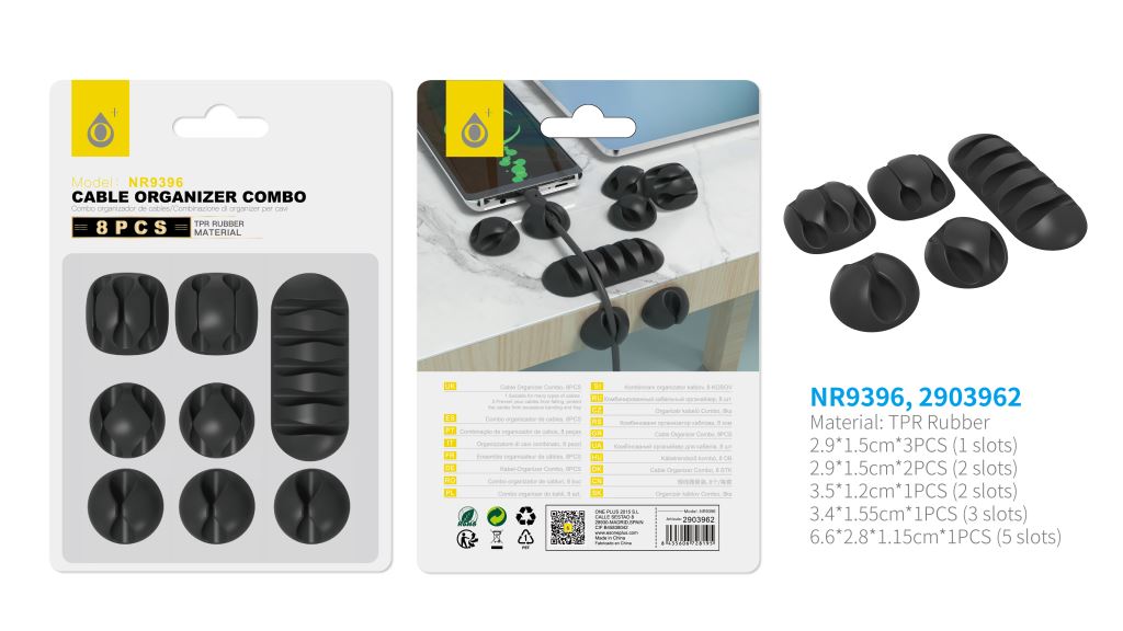 NR9396 NE Organizador Silicona de Cables 8pcs, Negro