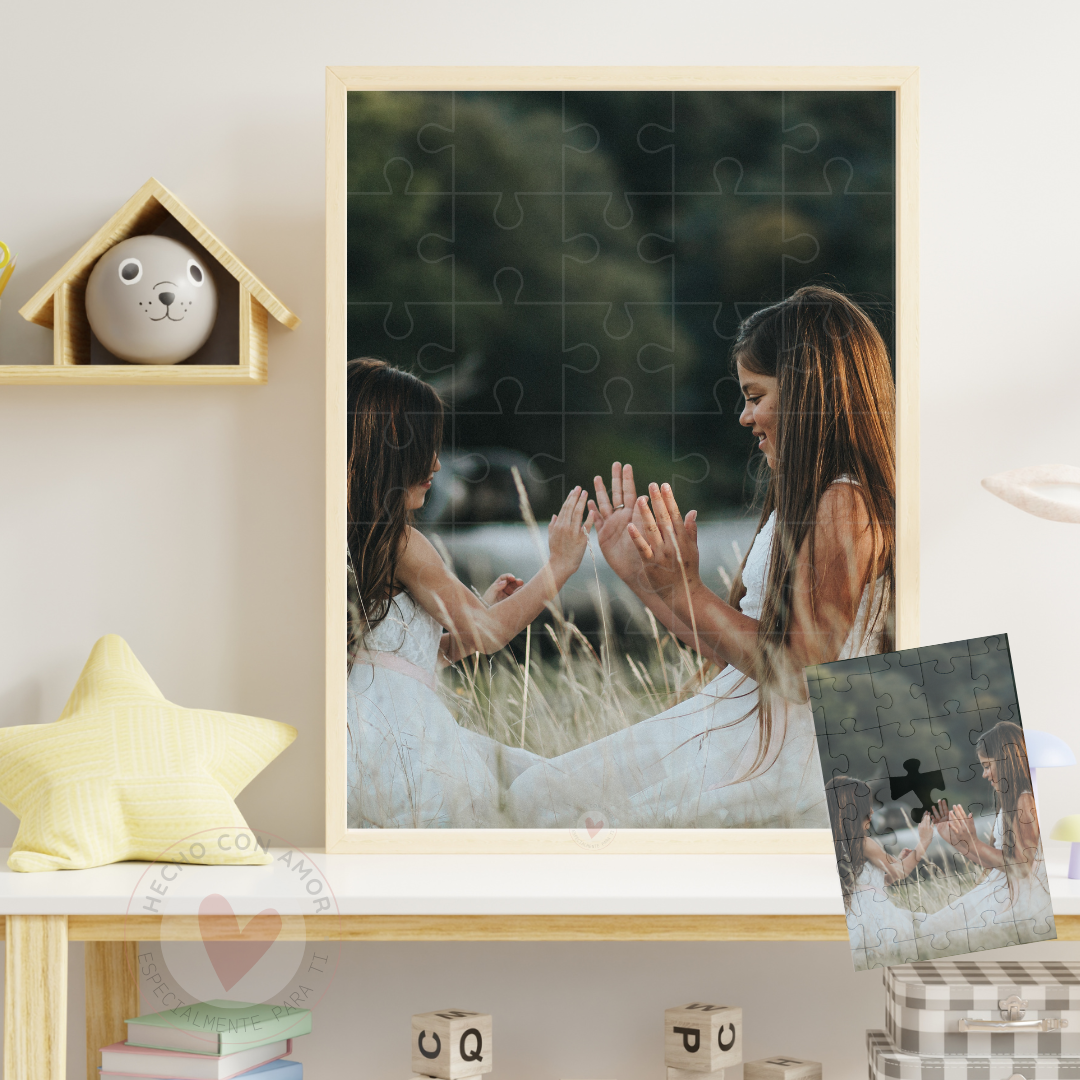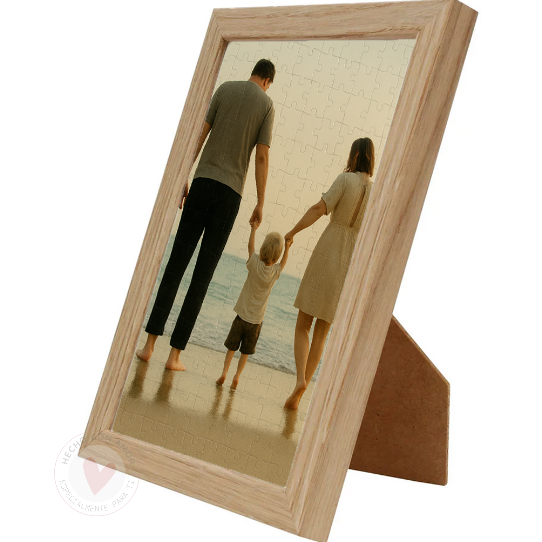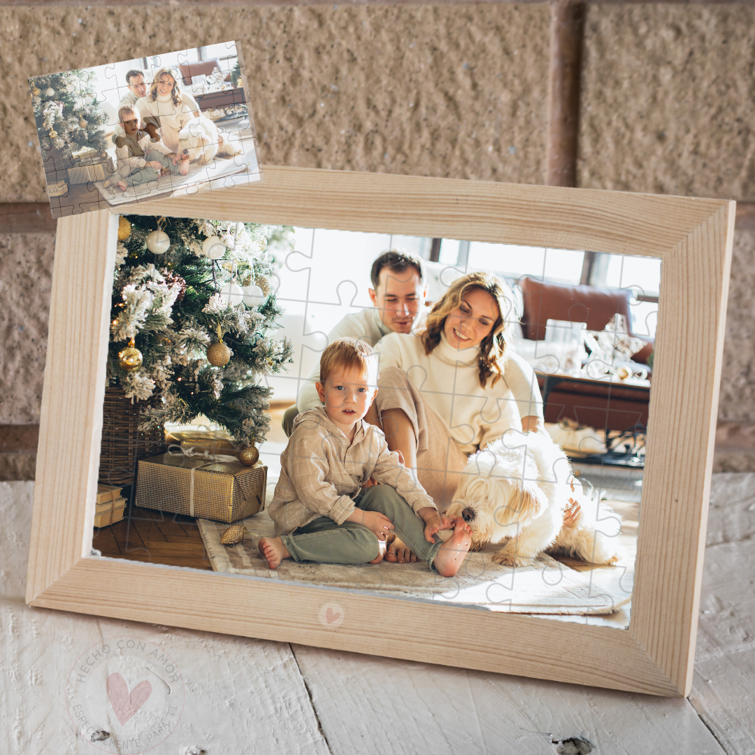 🧩 Puzzle personalizado con foto sobre cuadro de madera con marco