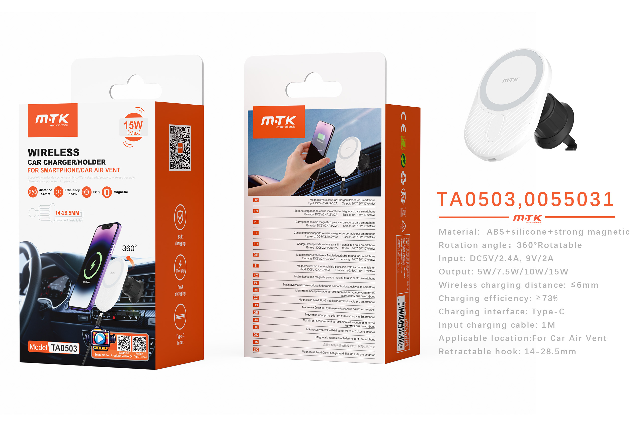 ¡Conduce con seguridad y comodidad! El soporte magnético TA0503 se adapta a cualquier rejilla de ventilación de coche y mantiene tu móvil firmemente sujeto, incluso en trayectos con baches. Compatible con la mayoría de smartphones, este soporte incorpora carga inalámbrica rápida de 15W, lo que te permite recargar tu dispositivo sin cables mientras conduces.