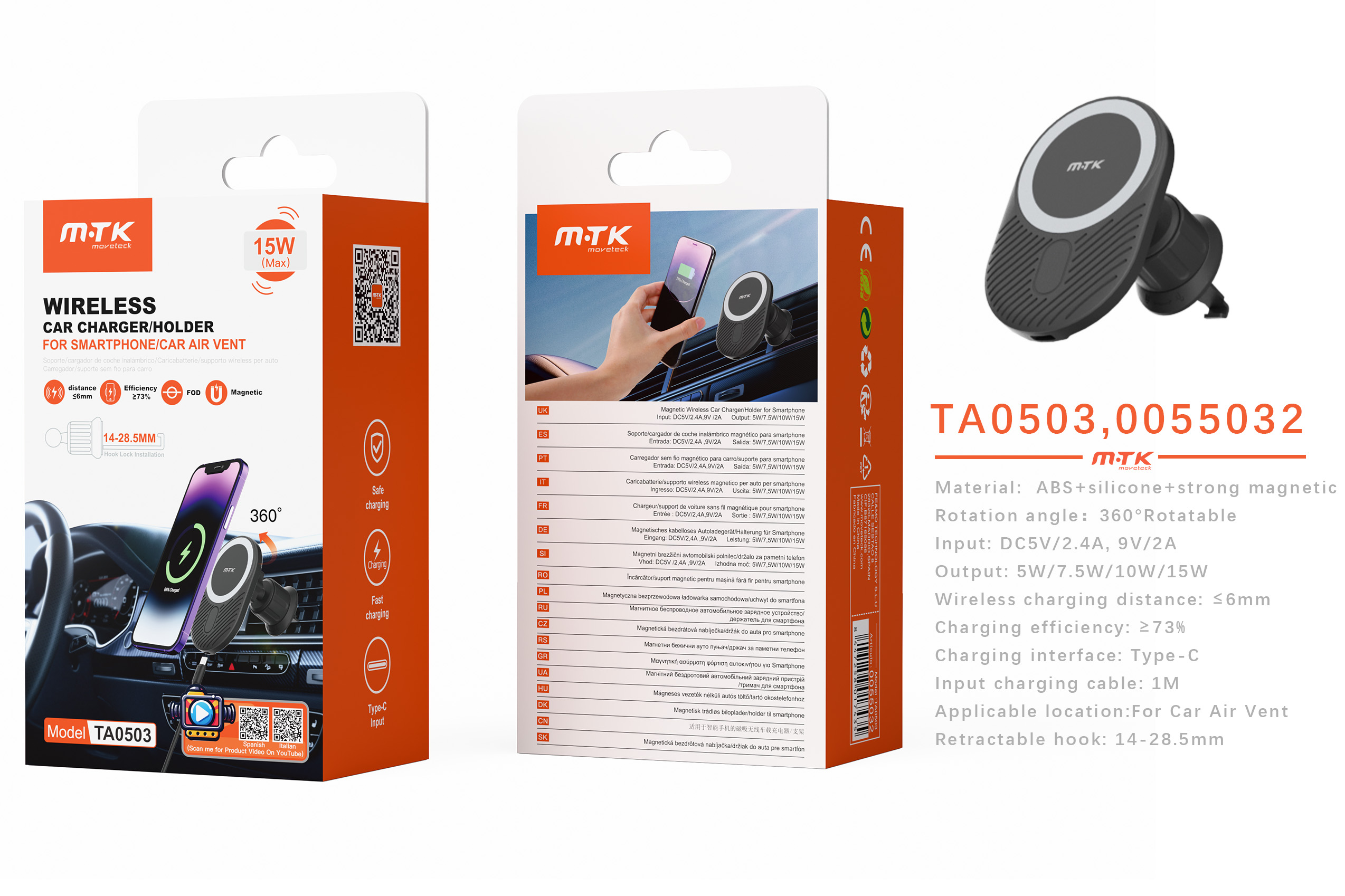 ¡Conduce con seguridad y comodidad! El soporte magnético TA0503 se adapta a cualquier rejilla de ventilación de coche y mantiene tu móvil firmemente sujeto, incluso en trayectos con baches. Compatible con la mayoría de smartphones, este soporte incorpora carga inalámbrica rápida de 15W, lo que te permite recargar tu dispositivo sin cables mientras conduces.