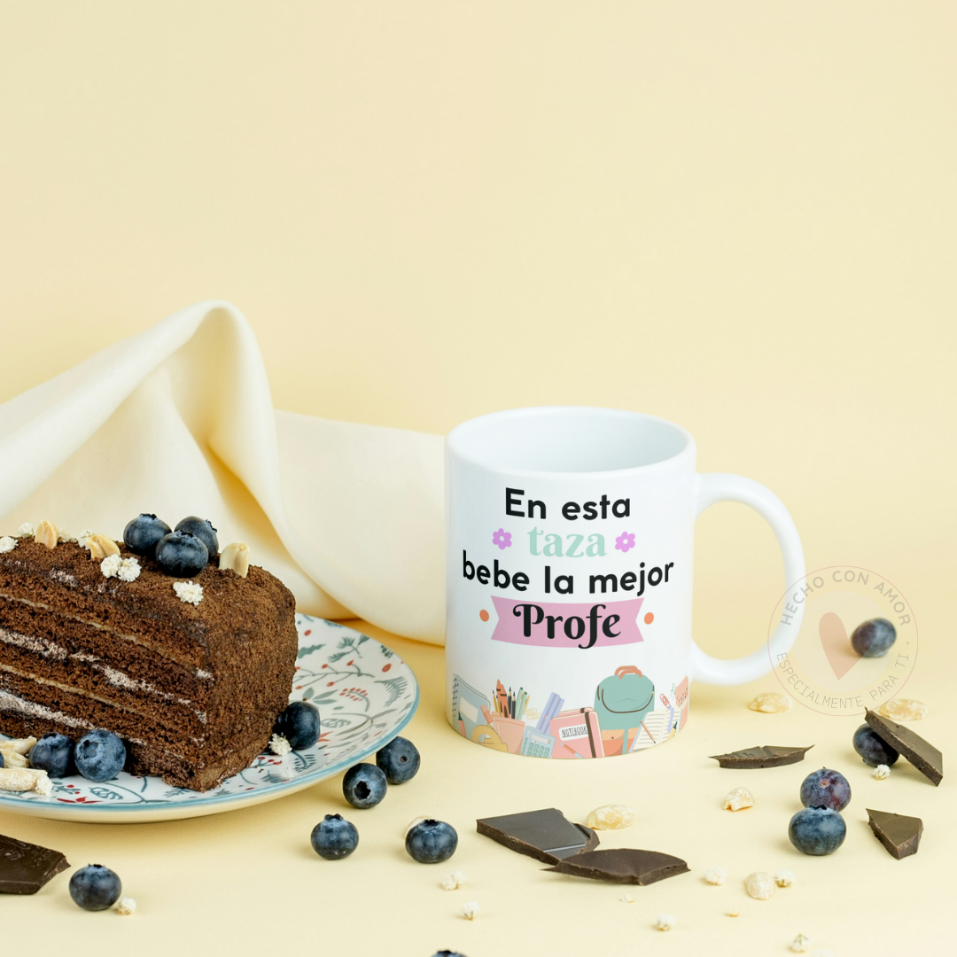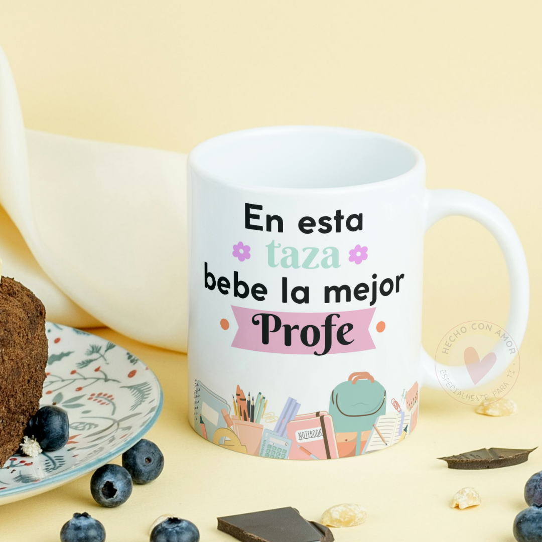 Taza Personalizada con Frase Diseño Profe En esta taza bebe la mejor / el mejor Profe