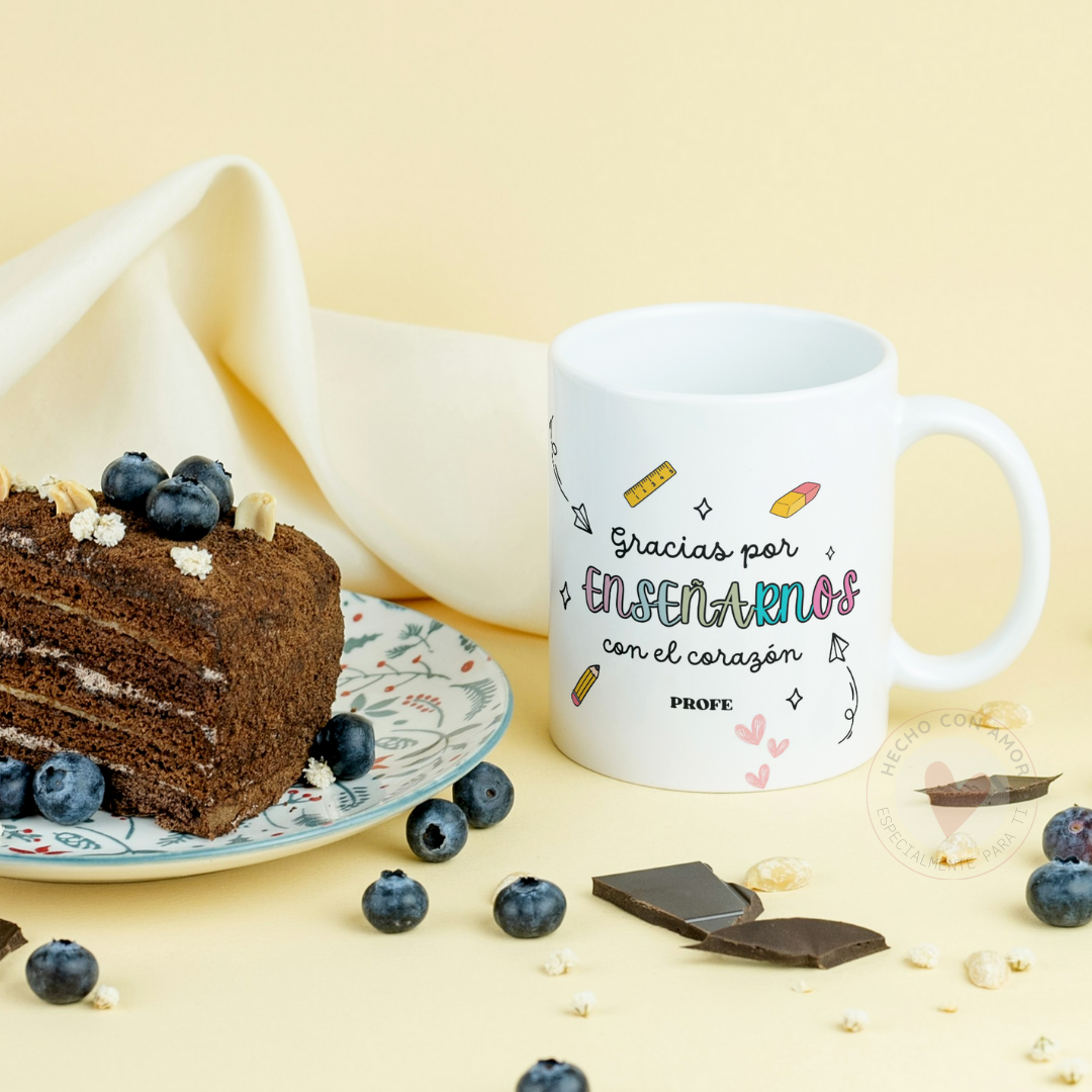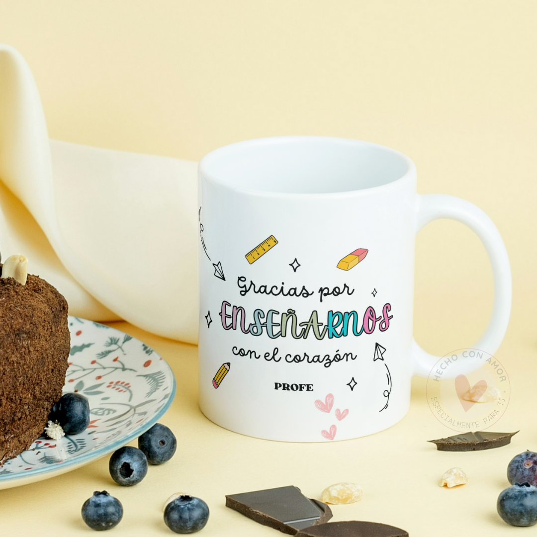 Taza Personalizada con Frase Diseño Profe Gracias por enseñarme con el Corazón