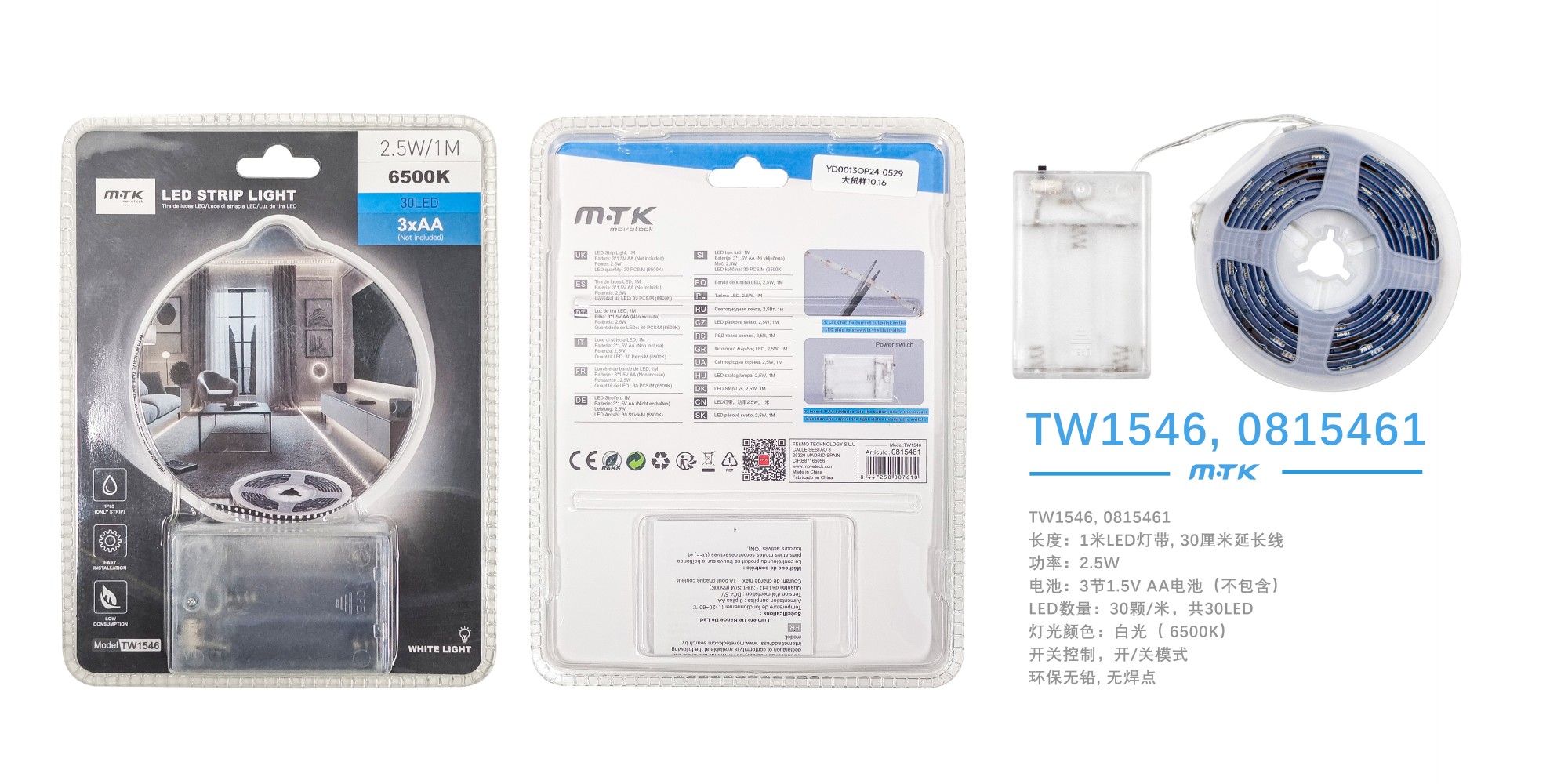 TW1546 Tira de Luces con pilas 6500K luz fria/30LED/2.5W/1M