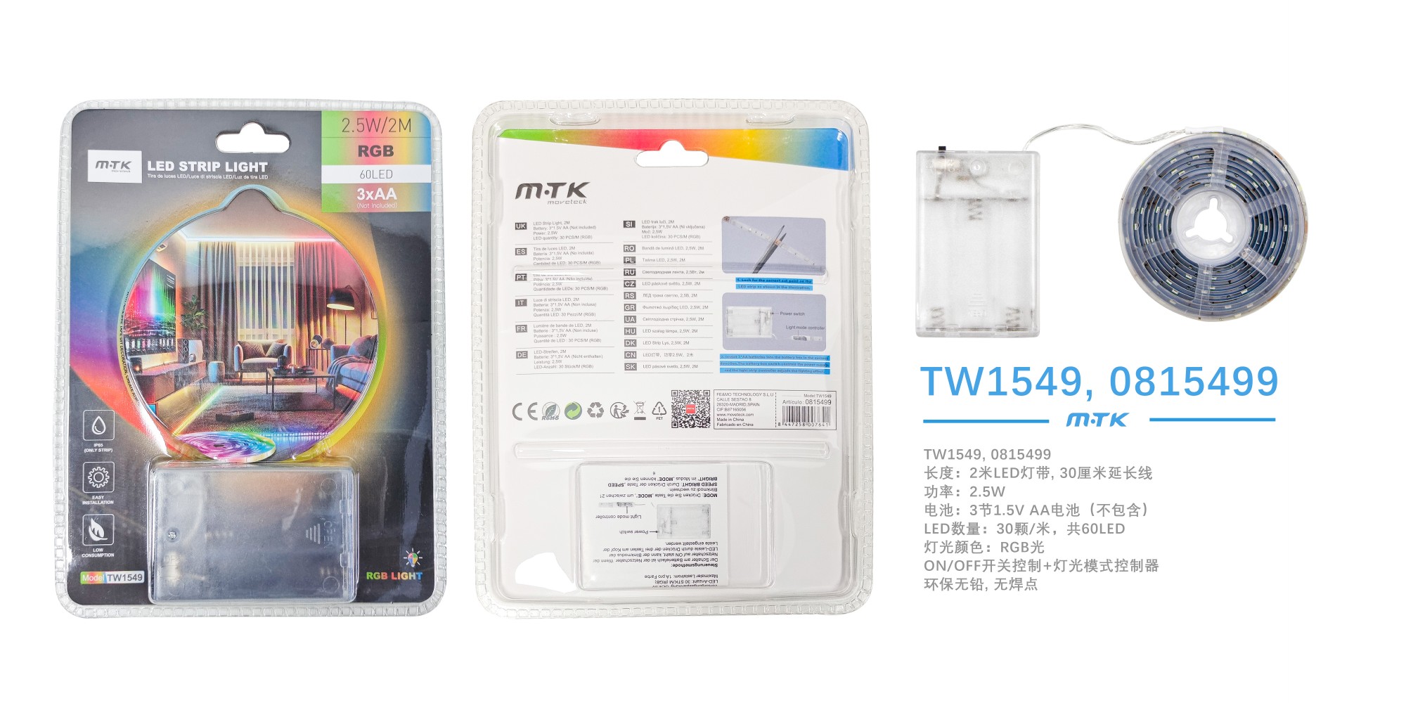 TW1549 Tira de Luces con pilas luz RGB/60LED/2.5W/2M