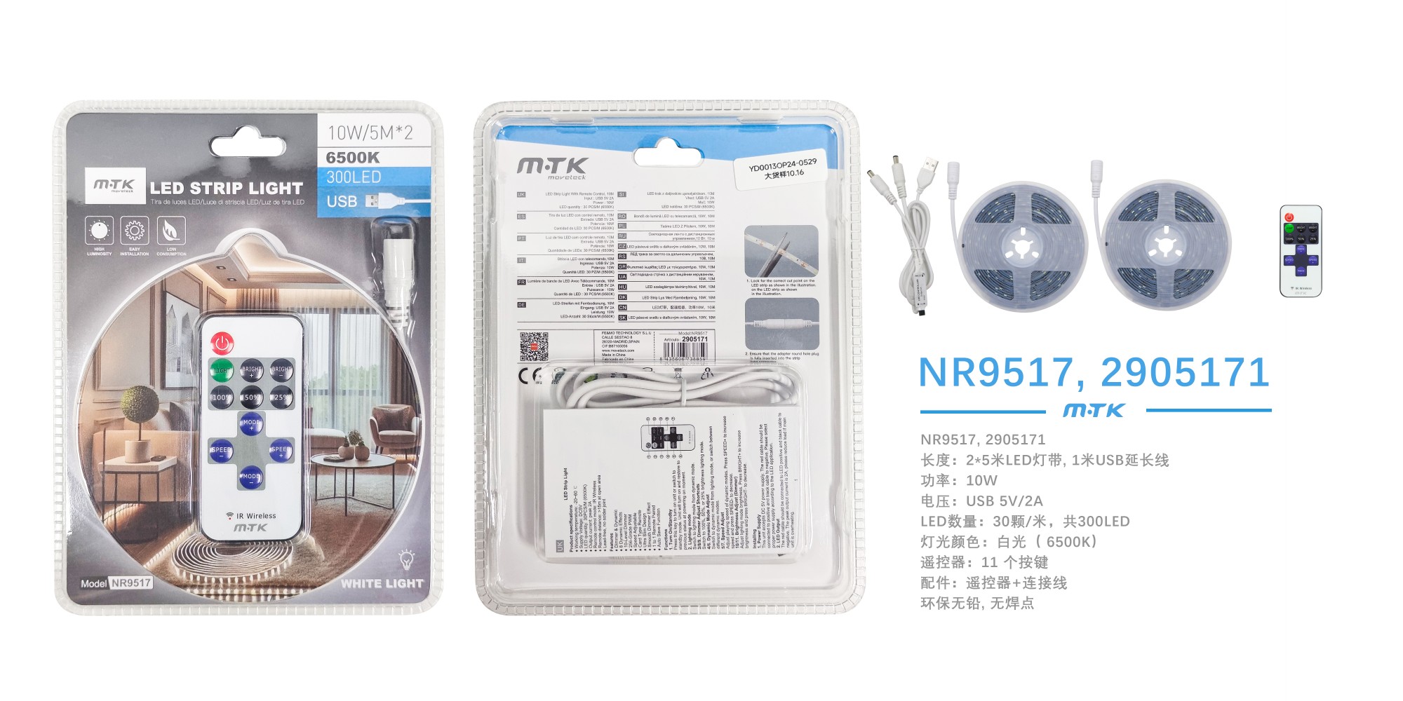 NR9517 Tira de Luces LED Sin Plomo, Luz Frio 6500K, Con control Remoto, 5W/5V/1A, cable 10M